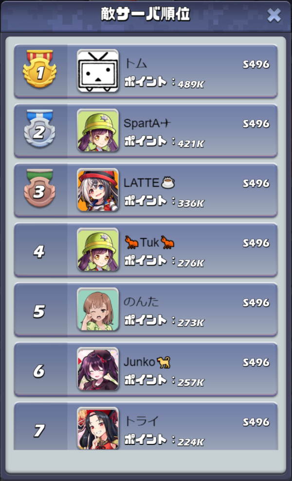 まぁ・・・お互いS73に負けたサーバー同士でもあり、ほんとに似たような戦力なのでは無いだろうか