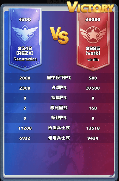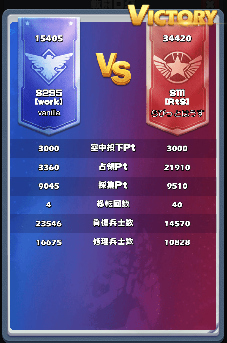 一番上の数字をみると、採集Ptまで足された数字のように思えるので、撃破Ptらしきものは相変わらず反映されていない?占領Ptに反映されている可能性もあるが、負傷兵士数の数とかを考えると、違うように思える