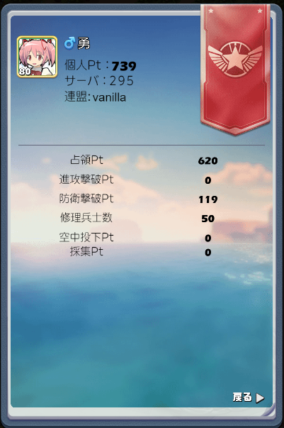 個人成績のページでは進行撃破と防衛撃破で判れており、それぞれにポイントがあったのだが、連盟ポイントのほうは0だった。