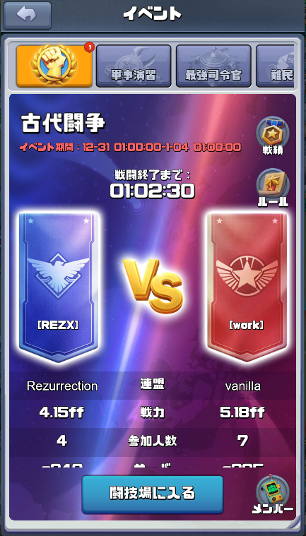 本来、筆者の居る連盟は3位とか4位の連盟なので、今回の先行テストでの古代闘争には参加できないはずである・・・。