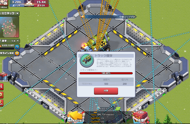 10分毎にトラック爆弾がマップ中央へ投下されてくるので、最後に攻撃した人・陣営へポイントが入る